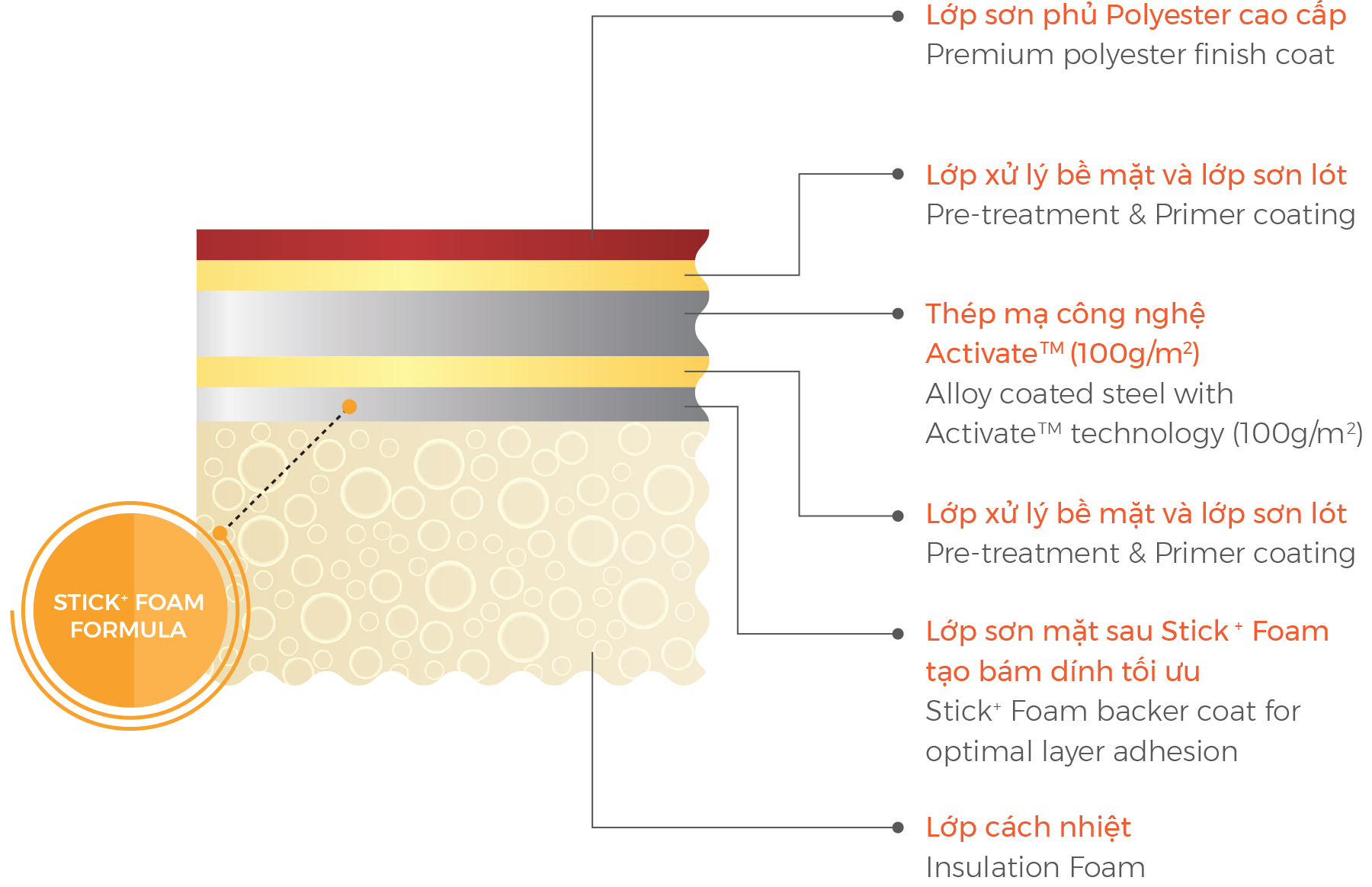 Vi cấu trúc ma trận 4 lớp tạo nên 4 rào cản bảo vệ thép: chống ăn mòn bề mặt, chống ăn mòn tại mép cắt. Bảo hành đến 25 năm*, ngay cả ở môi trường biển.